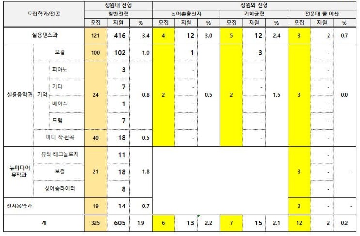 2026학년도 백제(백제예술대학교) 실용음악과 경쟁률 정보글