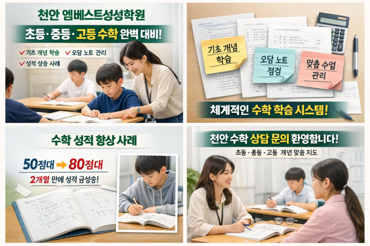 성성동 수학학원, 초등·중등·고등까지 확실하게 잡는 방법 안녕하세요 성성동에서 자녀 수학 공부 때문에 고민하시는 학부모님들 많으시죠? “초등 때는 잘하던 아이가 중학교 가서 무너져요…” “고등 올라가니까 수학이 너무 어렵다고 포기하려 해요…” 이런 고민, 정말 많이 듣습니다. 사실 수학 성적은 어느 한 시기만 잘해서 되는 것이 아니라 초등 → 중등 → 고등으로 이어지는 ‘연결 학습’이 가장 중요합니다. --- ✔ 초등 수학, 개념과 습관이 핵심입니다 초등 시기에는 문제를 많이 푸는 것보다 개념을 정확하게 이해하고 ‘스스로 생각하는 힘’을 키우는 것이 중요합니다. 이 시기를 놓치면 중학교에서 바로 어려움을 겪게....... <img src="https://blogthumb.pstatic.net/MjAyNjA0MTZfMjU2/MDAxNzc2MzIzMjQxNDk5.Y21UBlQmWoEU5sW0xut4e1kbG4iV_dOPdbB5ehzai1gg.O-MGALjuV4c4itsr128BHz1ZUxzW32v757UFazsL6JUg.PNG/KakaoTalk_20260416_160541906.png?type=s3" />