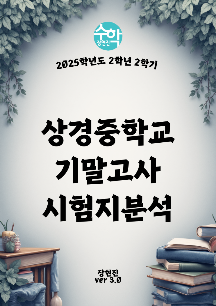 안녕하세요 장현진수학 ver 3.0입니다. 2학기 기말고사 학교별 분석 처음 차례는 상경중학교 2학년입니다. 1. 2025학년도 상경중학교 2학년 2학기 기말고사 시험 분석 2. 상경중학교 2학년 2학기 기말고사 시험 분석 - 난이도 이번 상경중학교 기말고사 난이도는 전반적으로 평이하게 출제되었습니다. 선택형으로만 28문항이 출제되어 시간 관리에 신경을 써야 합니다. 3. 상경중학교 2학년 2학기 기말고사 시험 분석 - 문제 형태별 배점 비율 4. 상경중학교 2학년 2학기 기말고사 시험 분석 - 출처 분석 이번 시험은 닮음 조건, 피타고라스 정리 증명 등 도형에 대한 이해를 물어보는 문제들이 출제되었습니다. 또한 확률의 복합 계산에서도 고....... <img src="https://blogthumb.pstatic.net/MjAyNTEyMTlfNjMg/MDAxNzY2MTM4ODg1Nzk3.QecZGhMkHFB7kfiKlX-Nk03AaEewDfC215BI_BNC-2cg.G9XPW_lhc5OtJykI7WCrfMbMoPBgIeCi2PXU_Bg0JtYg.PNG/%BB%F3%B0%E6.png?type=s3" />