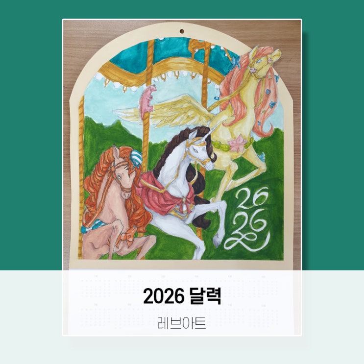 2026을 맞이한지 불과 얼마 되지 않은 것 같은데 벌써 2월의 중반을 달려가네요. 12월 말부터 다가오는 2026년을 맞이하며 아이들과 함께 달력 그리기 작업을 진행해 보았답니다. 늘 캐릭터 그림을 그리고 싶어 하는 아이들의 소원을 집어넣어 자기가 좋아하는 캐릭터와 '말'을 함께 화면을 구성해 달력 그림을 그려보았어요. 말을 화면의 중심에 두고 역동적인 장면을 표현한 친구도 있고, 자신이 좋아하는 캐릭터 (주토피아, 코난, 짱구 등...) 속에 말을 자연스럽게 포함시켜 하나의 스토리가 느껴지도록 구성한 친구도 있네요! 같은 주제 안에서도 표현해 낸 구성과 분위기가 모두 달라 더 재미있게 느껴지는 것 같아요! 아이들도....... <img src="https://blogthumb.pstatic.net/MjAyNjAyMTJfMjM5/MDAxNzcwODk5NTA1OTM5.7QMwy1nA75FI9sbga9f-ZGXUZWeyK_5f8a3epwZjioEg.r12R8g-Bn3x6SnpPedpNggLyKNJxqTCxvJ_ozWETFecg.JPEG/1.jpg?type=s3" />