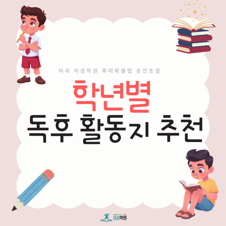 마곡 공진초 루미북 이끔수학학원 초등학생 학년별 독후 활동지 추천 안녕하세요, 루미북클럽 마곡공진초점 루미쌤입니다~! 우리 아이들에게 독서가 얼마나 중요한지는 이제 모든 학부모님이 공감하시는 부분일 거예요. 하지만 책을 '읽는 것'만큼이나 중요한 것이 바로 독후 활동이라는 사실, 알고 계셨나요? 이번 포스팅에서는 초등 시기에 왜 독후 활동이 반드시 필요한지, 그리고 학년별로 어떻게 활동을 하면 좋을지 세심하게 짚어드리고자 합니다. 독후 활동, 꼭 해야 하나요? "독후 활동, 꼭 해야 하나요?" "네, 초등 시기에 반드시 필요합니다." 독후활동은 책을 읽은 후 내용을 다시 떠올리고, 나의....... <img src="https://blogthumb.pstatic.net/MjAyNjA0MjhfMTQ5/MDAxNzc3MzAyODY4MTM5.rZExAvnkBFWVjf-yaiNnbLNVxLeAsJGZh9BHfE2BckIg.HKwhNVcFqBIMvB3l6Bj_4HCSJYvjlw6mDv7JkaxzbTMg.PNG/KakaoTalk_20260428_001220957_01.png?type=s3" />