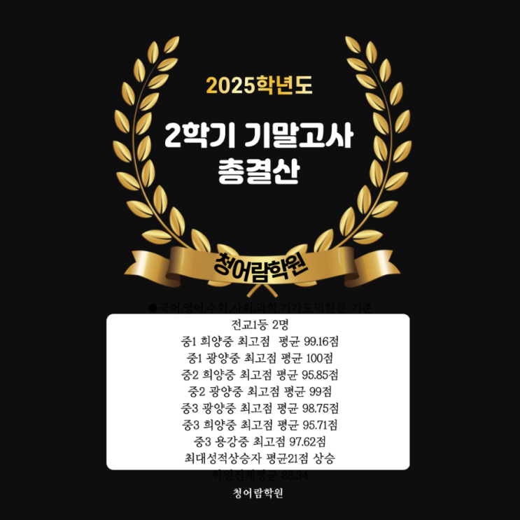 25년 2학기 중등부 기말고사 결과. 광양 중마동 타임영어학원