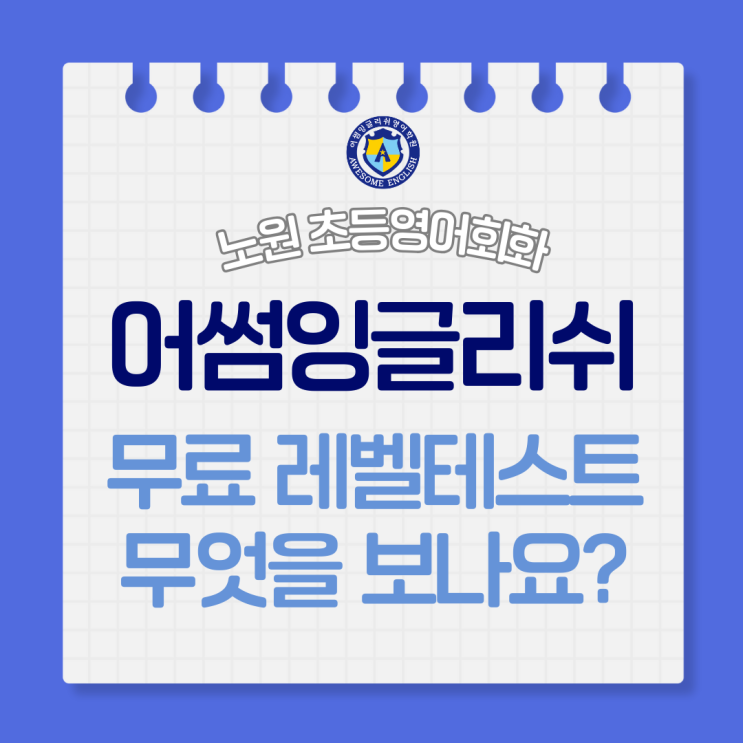 안녕하세요! 노원 공릉동 중계동 그리고 다산동에 위치한 말문이 트이고 영어가 즐거워지는 노원 16년차 초등영어회화 전문학원 어썸잉글리쉬 입니다:) 오늘은 어썸잉글리쉬에 첫 방문을 하시기 전, 어썸잉글리쉬의 무료레벨테스트와 입학 상담과정에 대해 많은분들이 궁금해하시는 부분들을 답해드리려 합니다:) 레벨테스트 받으면 등록해야 하는거 아닌가요? 많은 분들이 이 걱정 때문에 연락을 미루십니다. 솔직히 말씀드리겠습니다. 어썸잉글리쉬의 레벨테스트는 등록을 전제로 하지 않습니다. 테스트를 받으셨다고 등록을 권유하지 않으며, 맞지 않는 상황이라면 그렇게 말씀드립니다. 레벨테스트의 목적은 단 하나입니다. 지금 우리 아이가....... <img src="https://blogthumb.pstatic.net/MjAyNjAyMThfMzMg/MDAxNzcxNDE0NTM2OTMy.j_K79GYwkbvFdqt9DOiabeyR5X4iRAIESPFbR8DxKxQg.pepWgSdGbyatHzwUg1NXtq3hZt9ApYb1h_2P-AOTIE4g.PNG/10.png?type=s3" />