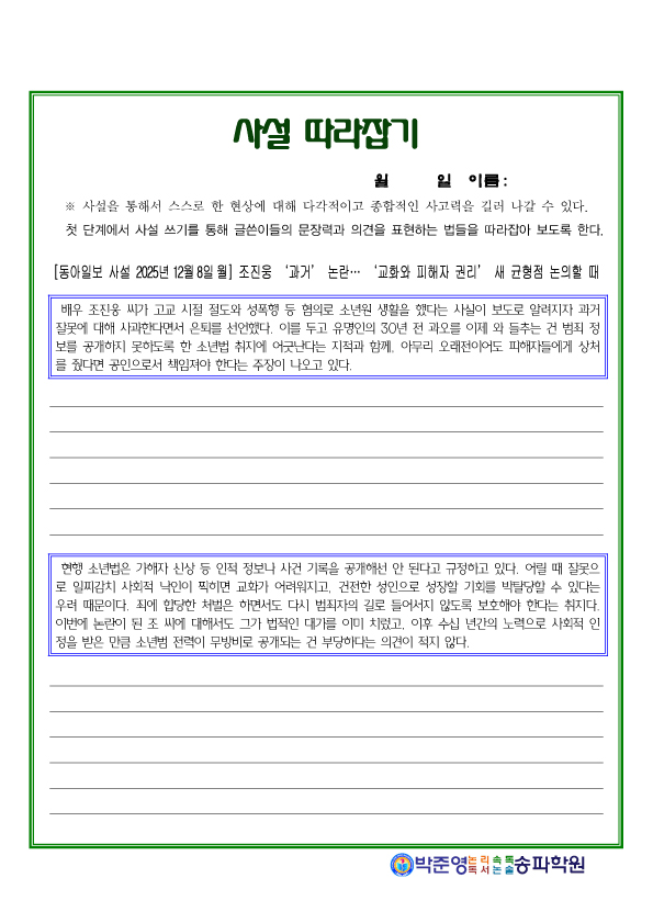 2025년 12월 8일 사설 과제입니다. 첨부 파일 확인바랍니다. <img src="https://blogthumb.pstatic.net/MjAyNTEyMDhfNjkg/MDAxNzY1MTUxMzE1OTc0.HrpgdSIWUCBb1gjmgtf2CzPxt_nlayOHQrdGONRA_58g.oey97Hd2AS3TFfEHMCWPF4ebMj5hJoMbwucMLd-_y9gg.GIF/01.gif?type=s3" />