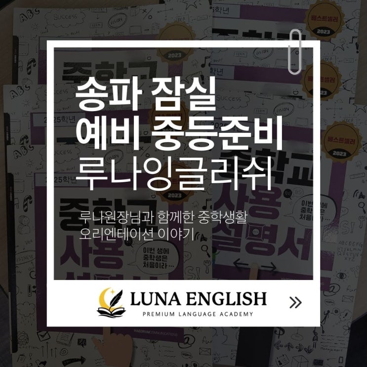 지난주 초등부와 중등부 아이들이 모두 개학을 했습니다. 특히 올해 새롭게 중학교에 입학한 1학년 학생들은 설렘과 긴장감이 함께 느껴지는 시기인데요. 처음 상담할 때 자주 듣는 질문이 있습니다. “초등학교랑 중학교는 얼마나 다른가요?” “중학교 가면 공부가 많이 어려워지나요?” 생각보다 많은 학부모님들이 이 부분을 궁금해하십니다. 그래서 루나잉글리쉬에서는 매년 이 시기에 예비 중등준비 오리엔테이션을 진행합니다. 아이들이 앞으로 만나게 될 중학교 생활 전체를 이해하는 시간을 가지기 위해서 입니다. 이번에도 중1 신입생 아이들과 함께 조금 특별한 시간을 보냈습니다. 중학교 입학, 무엇부터 준비해야 할까요? 초등학교....... <img src="https://blogthumb.pstatic.net/MjAyNjAzMTFfMTYy/MDAxNzczMjA2NDYzMjcz.Jg99E-rXFy56BVRgx4NGA6VqH2Mq1TPtB1ggsPMMOj8g.-iIoug55yPeGn255xIl4oReP9wksl-hYVytmxa9IsMkg.JPEG/%BF%B9%BA%F1_%C1%DF%B5%EE%C1%D8%BA%F1_%281%29.jpg?type=s3" />