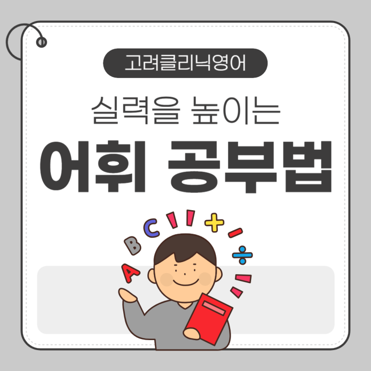 안녕하세요, 고려클리닉영어 학원입니다. 오늘은 영어 학습의 기반이 되는 어휘, 단어 암기에 대해 알아보겠습니다. 영단어, 많이 외울수록 좋은가요? 중요한 것은 '많이'가 아니라 '정확히' 외우는 것입니다. 수능 영어는 출제 가능한 어휘 수준이 정해져 있습니다. 고등학교 필수 어휘를 완벽히 알고 있다면 시험 대비는 충분합니다. 그 이상의 어려운 단어는 대부분 시험지에 뜻이 제시됩니다. 즉, 범위를 넓히는 것보다 필수 어휘를 정확히 익히는 것이 훨씬 효율적입니다. 어휘 레벨 업, 꼭 필요한가요? 고등 단어가 끝나고 더 어려운 어휘를 익히는 과정이 반드시 필요한 것은 아닙니다. 수학처럼, 중요한 것은 개념을....... <img src="https://blogthumb.pstatic.net/MjAyNjAyMTJfMTk3/MDAxNzcwODc5MTI0ODIy.RL2ztRv5KoFfbeolxOiH1whlScckNo06H3vbufyf14Qg.kI_oqmoMCjlvENtPjSTj50HqgdbfVS_BDt9taVMkNBcg.PNG/%C1%A6%B8%F1%C0%BB_%C0%D4%B7%C2%C7%D8%C1%D6%BC%BC%BF%E4_-001_%282%29.png?type=s3" />