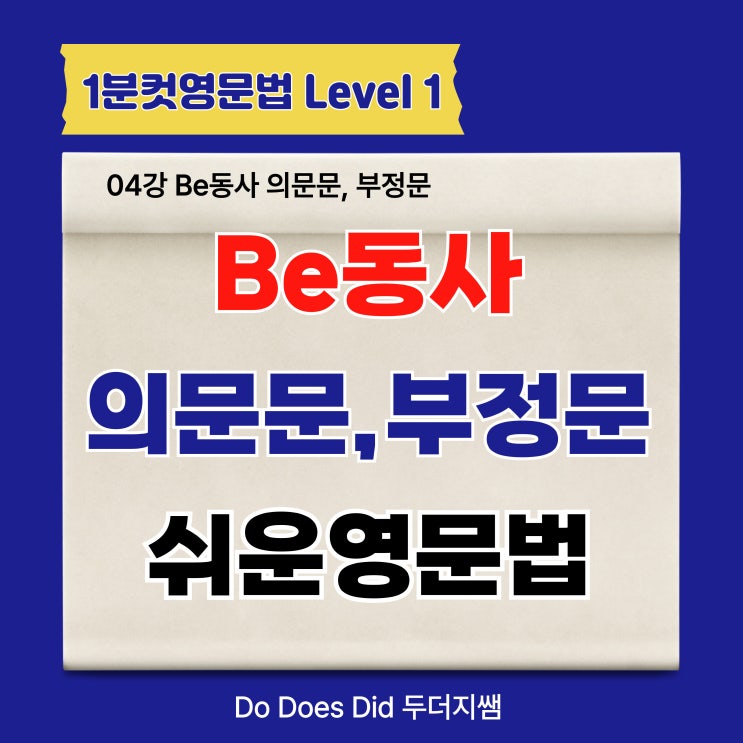 안녕하세요:D 초등학생, 중학생을 가르치는 1분컷영문법 저자 현직 학원강사 두더지쌤입니다. 수업을 하다 보면 be동사 단원에서 꼭 멈추는 지점이 있습니다. 의문문으로 바꾸는 순간, 아이들 손이 멈춥니다. not을 어디에 붙여야 하는지에서 또 한 번 헷갈립니다. 이 부분이 바로 기초영문법에서 가장 중요한 구간입니다. 1. be동사의 의문문 be동사의 의문문은 주어랑 자리만 바꾸면 끝! I am a teacher. (나는 선생님이야) Am I a teacher? (내가 선생님이야?) You are ready.(너 준비됐어) Are you ready?(너 준비됐니?) She is late. (얘 늦었어) Is she late? (얘 늦었니?) 아이들이 여기서 가장 많이 하는 실수는 동사를 안 보고 그냥 순....... <img src="https://blogthumb.pstatic.net/MjAyNjAyMTZfMTky/MDAxNzcxMjQ4MTgyMjEx.8I36Lf98Xuxd7nWwis7NSQyuO-yxuapP5InY7i8DQFMg.77sYuUSA_cfiq1269a67Q7RtAZI2WZIdWsnExH65lQog.JPEG/006.jpg?type=s3" />