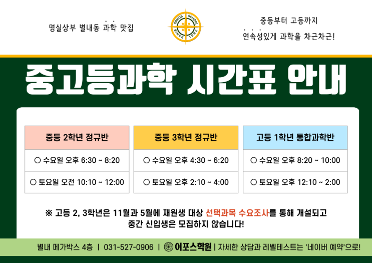 안녕하세요, 초등/중등/고등 수학 과학 전문학원, 이포스학원입니다! 중학교 2학년은 학생들이 처음으로 “과학이 조금 어려워졌다”고 느끼기 시작하는 시기입니다. 1학기에는 - 물질의 특성 - 지권의 변화 - 빛과 파동 - 물질의 구성 과 같은 단원을 배우게 됩니다. 이때부터 과학이 어렵게 느껴지는 이유는 중3 과학은 물론 고등학교 통합과학까지 이어지는 중요한 개념들이 등장하기 때문입니다! 그래서 중2 과학은 시험 직전에 문제를 많이 푸는 것보다 개념을 정확히 이해하고 꾸준히 정리하는 과정이 무엇보다 중요합니다. 이 시기에 개념을 잘 잡아 두면 중3, 고등학교 과정에서도 훨씬 안정적으로 공부할 수 있습니다. 중2 과학 수업은....... <img src="https://blogthumb.pstatic.net/MjAyNjAzMDZfMTMz/MDAxNzcyNzg0Njc3NTIx.sY6TPLPeMDM9MAoQM5Fbm3xhLN-s9zphLRLoLqUvwCkg.qdDslIk44Lqk3MjIEEkPT0wY5WjxTSsZs9aSENozyn4g.PNG/%C1%A6%B8%F1%C0%BB-%C0%D4%B7%C2%C7%D8%C1%D6%BC%BC%BF%E4__A4-006_%281%29.png?type=s3" />