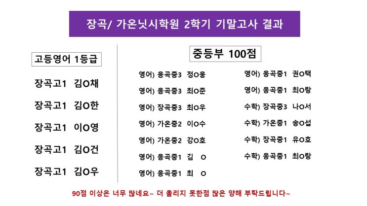 안녕하세요 #장곡닛시학원 #가온닛시학원 입니다. 2025년이 벌써 마무리가 되어가네요. 기말고사 보느라 우리애들 수고 많았습니다~ 90점 이상친구들 너무 미안합니다. 다음은 100을 향해 방학때 열심히 해봅시다!! 입시는 닛시입니다. N I S S I 문의전화) 031-314-5680 <img src="https://blogthumb.pstatic.net/MjAyNTEyMjBfMzQg/MDAxNzY2MjIxODQ3NzQ4.i1Aj3Yk7GVtqx88c-eDWp_qpFIbSXWStQ4CZd4u0AT0g.edHAWD69UEa-MwbTVIPiriiyJsLs7nHTxYPyjUCQJjYg.JPEG/25%B3%E2_%B1%E2%B8%BB.jpg?type=s3" />