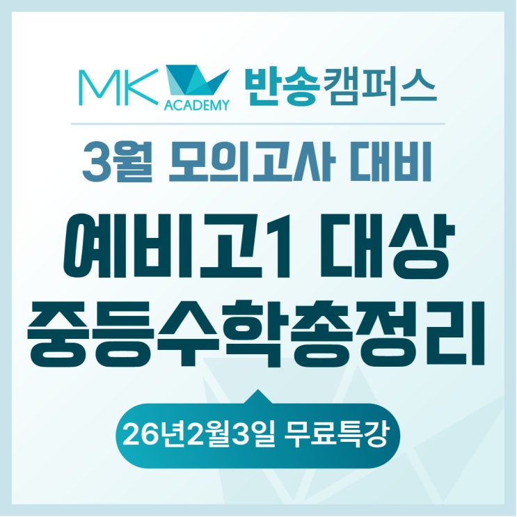 3월 모의고사 대비 예비고1 대상 중등 수학 총정리 무료 특강 , 반송 MK아카데미
