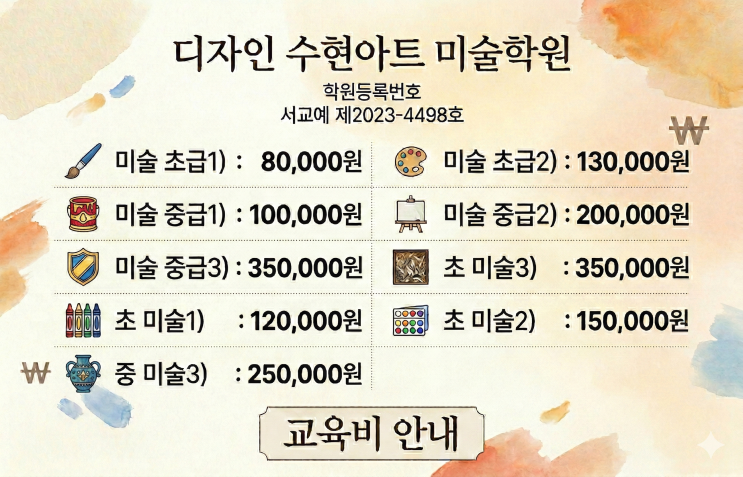 학정역 미술학원 미술 수업 교육비 안내 | 디자인수현아트미술학원