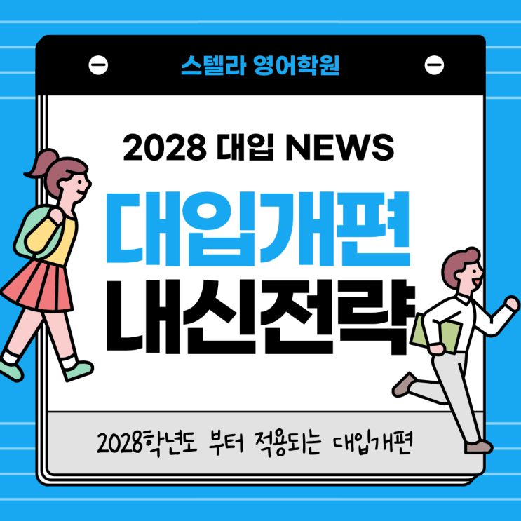 2028 대입 개편 완벽 정리, 학부모가 꼭 알아야 할 내신 전략 “2028 대입 개편, 우리 아이에게 어떤 영향을 줄까요?” 최근 학부모 상담에서 가장 많이 나오는 질문입니다 예전에는 고등학교에 올라가서 방향을 잡아도 늦지 않았지만 지금은 상황이 완전히 달라졌습니다 2028 대입 개편은 단순히 시험 방식이 바뀌는 것이 아니라 학생을 평가하는 기준 자체가 달라지는 변화입니다 특히 눈여겨봐야 할 부분은 바로 ‘내신’입니다 많은 분들이 아직도 수능 중심으로 생각하시지만, 실제 흐름은 내신과 학습 과정의 중요성이 점점 커지고 있습니다 그래서 이 글에서는 단순한 제도 설명이 아니라 2028 대입 개편 속에서 왜 내신이 중요해졌....... <img src="https://blogthumb.pstatic.net/MjAyNjA0MjhfMjc2/MDAxNzc3Mzc0MDk3ODc0.R6vYvvcy0Tc6JQIitryuc2Zs4WxOGNw8wWQFqvrBueUg.WUquX6magSk6PZo9KcTDIa0Jm9BPbz9YhfoAZjbxPYUg.PNG/1.png?type=s3" />