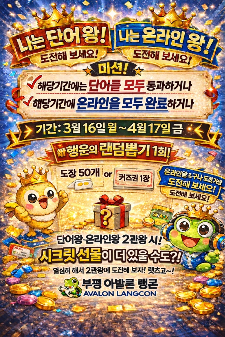 부평초등영어학원 - ✨ 성실한 학생들을 위한 특별 이벤트! “부평아발론 단어왕 · 온라인왕” ✨