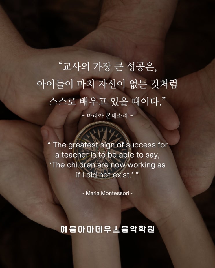 안녕하세요 병방동피아노학원, 예음아마데우스 음악학원입니다. 새로운 세상, 달라진 부모의 역할 – 몬테소리가 말해준 '스스로 배우는 아이'와 음악교육 우리는 지금, 이전과는 전혀 다른 세상을 살아가고 있습니다. 조금 전까지 안정적이라 여겼던 직업들이 하나둘씩 사라지고, AI와 기술이 많은 일을 대신하는 시대가 되었습니다. 이 변화 앞에서 부모로서 우리가 던지게 되는 질문은 자연스럽게 이런 것들입니다. ✅️ "어떤 공부를 시켜야 할까?" ✅️ "어떤 직업이 앞으로 안전할까?" 하지만 더 근본적인 질문은 어쩌면 이것일지 모릅니다. ✅️ "어떤 능력을 가진 아이가 변화하는 세상에서도 자기답....... <img src="https://blogthumb.pstatic.net/MjAyNTEyMTNfMTIw/MDAxNzY1NjI0Nzk0NzMy.EjVo03BVci1aD9JW6BhB9pM20tmX0QbUCAqUjJYU-68g.kfSv27N5O4q7rxG96qkFEr3ljw3LAL8WUmp8yZWLHlkg.JPEG/900%A3%DF1765620269638.jpg?type=s3" />
