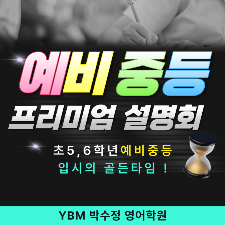 안녕하세요. YBM 박수정 영어학원입니다. 우리 아이들이 달려온 초등학교 6년의 시간이 이제 곧 새로운 차원의 학습으로 전환되는 중요한 순간을 맞이합니다. 바로 예비중등 시기입니다. 예비중등 시기는 단순한 학년 이동이 아닙니다. 지금부터의 준비가 중학교 3년뿐만 아니라 고등학교 학습 궤도를 설정할 결정적인 전환점입니다. 박수정 영어학원은 이 중요한 시기를 맞이한 초5, 초6 학부모님들을 위해 예비중등 설명회를 개최합니다. 왜 지금, 예비중등 설명회를 들어야 할까요? 중학교 진학 후에는 '내신의 시대'가 펼쳐집니다. 초등 때와는 비교할 수 없는 수준 높은 학습량, 서술형 평가, 고등학교 입시까지 이어지는 전략적....... <img src="https://blogthumb.pstatic.net/MjAyNTEyMTNfMzgg/MDAxNzY1NjEwOTQ1Mzc0._1AZR9QpqYH_6L_3NtsuWL63mCiD0f8VVtON5LWENqgg.C2WLfDLxaoPzxDvsGx5AZjp1YMMOMmWaOJPQQLg5C7Ag.PNG/1.png?type=s3" />