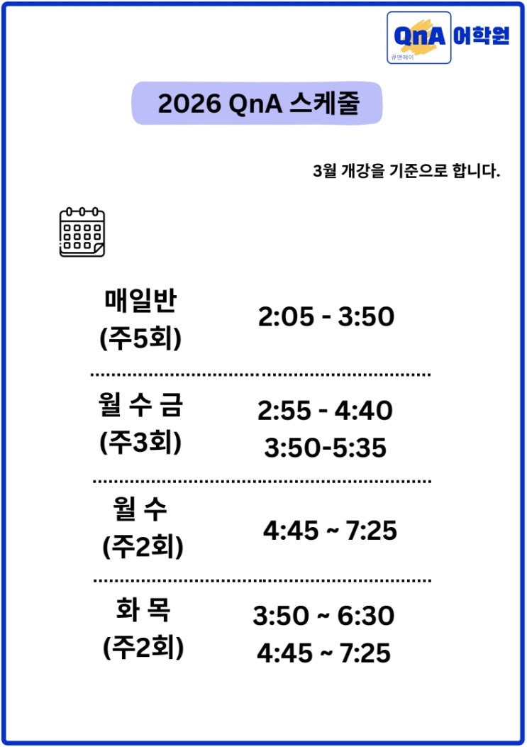 둔산동국어학원_ 더포스 03월 국어 수업 시간표 안내