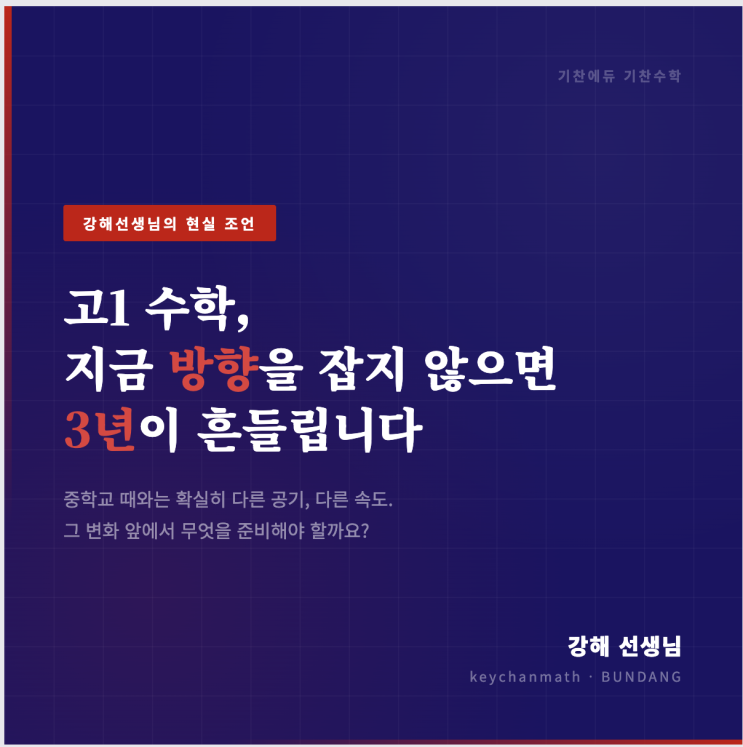 [분당 고등수학학원 강해선생님] 고1 수학, 지금 방향을 못 잡으면 3년이 흔들립니다.