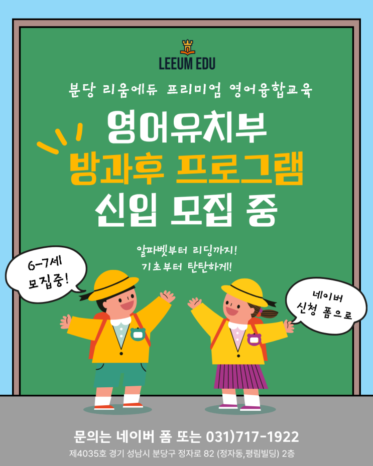 2026년 분당 리움에듀 영어유치부 방과후 프로그램 신입생 모집중!
