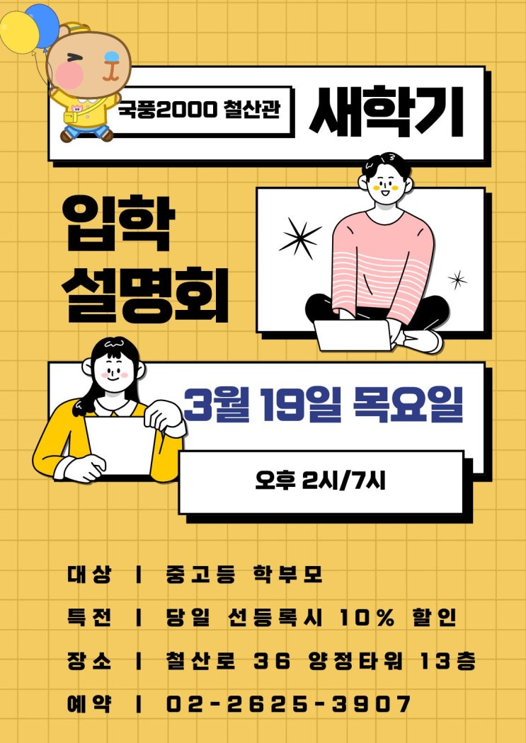 [광명 철산동 국어학원] 국풍2000 2026년 입학 설명회(3/19)