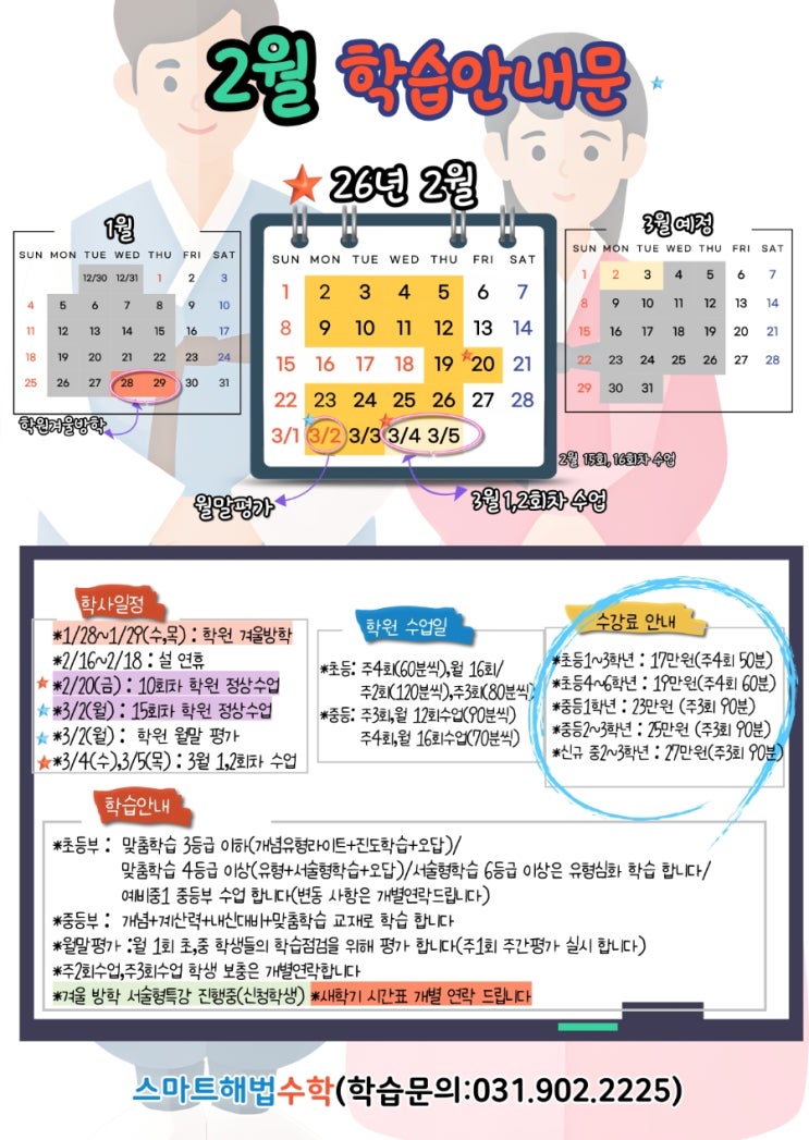 풍동/풍산/스마트해법수학/2월 학습안내문