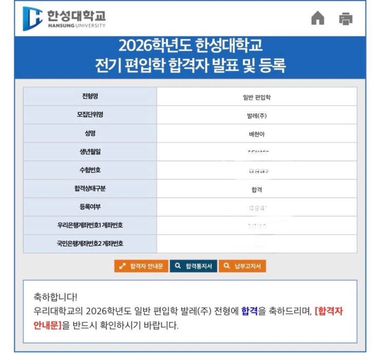 한성대학교 편입합격