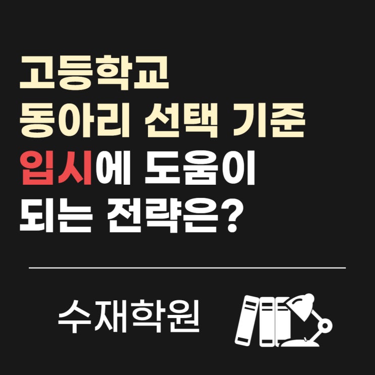 안녕하세요? 동대문구 수재학원입니다. 고등학교에 입학하면 학생과 학부모가 가장 많이 고민하는 것 중 하나가 있습니다. 바로 동아리 선택입니다. “어떤 동아리를 들어가야 대학 입시에 도움이 될까?” “진로와 관련된 동아리에 꼭 들어가야 할까?” 이 질문을 정말 많이 합니다. 결론부터 말하면 동아리 이름보다 중요한 것은 활동 내용과 학업 역량입니다. 대학이 학생부에서 보는 3가지 핵심 역량 현재 학생부종합전형에서 대학이 평가하는 기준은 크게 3가지입니다. - 학업 역량 - 진로 역량 - 공동체 역량 이 세 가지를 학생부 기록을 통해 종합적으로 평가합니다. 동아리 활동은 이 중에서 특히 - 진로 역량 - 공동체 역량 을 보여주기....... <img src="https://blogthumb.pstatic.net/MjAyNjAzMTJfNjIg/MDAxNzczMjgxMjU2MzA2.w5w7Z38zjUS7l6GtTXD5gzCcEMScjkXeAR4_5V0Odiog.XLoKnIfSB9YUvYjOlDe8eZ9cuSrHOU9oMxQ_AkYn6S8g.JPEG/%C1%A6%B8%F1%C0%BB_%C0%D4%B7%C2%C7%CF%BC%BC%BF%E4.jpg?type=s3" />