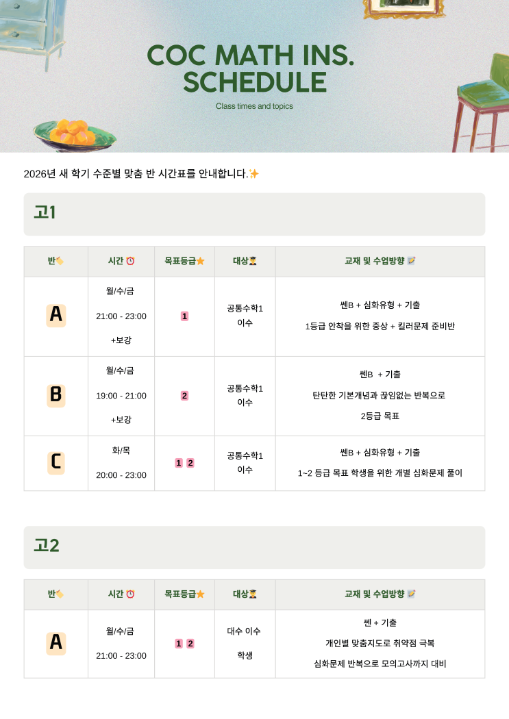26년 3월 고등수업 안내
