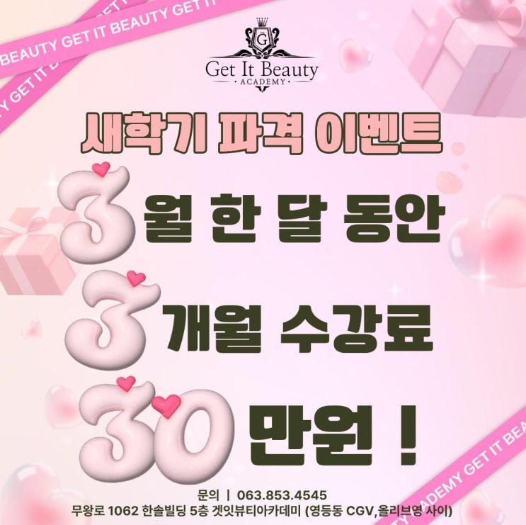 익산미용학원 겟잇뷰티 3월 이벤트 공지~!