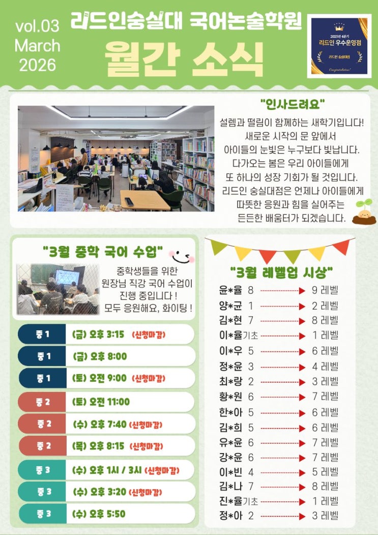 [리드인 숭실대점] 2026년 3월호 소식지