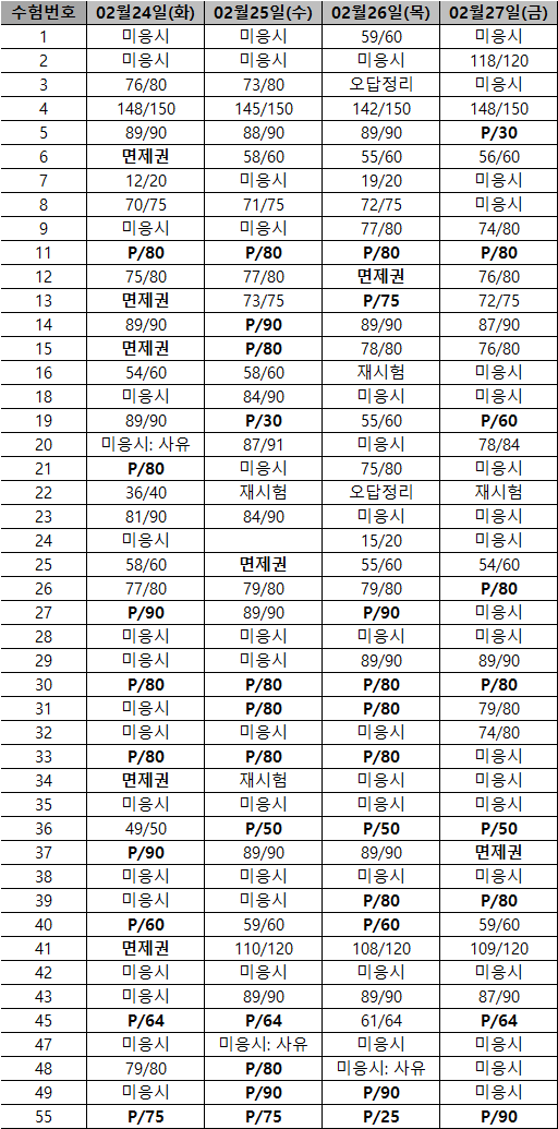 2026.02.28 단어시험 및 토요일 시험 결과표(임시)