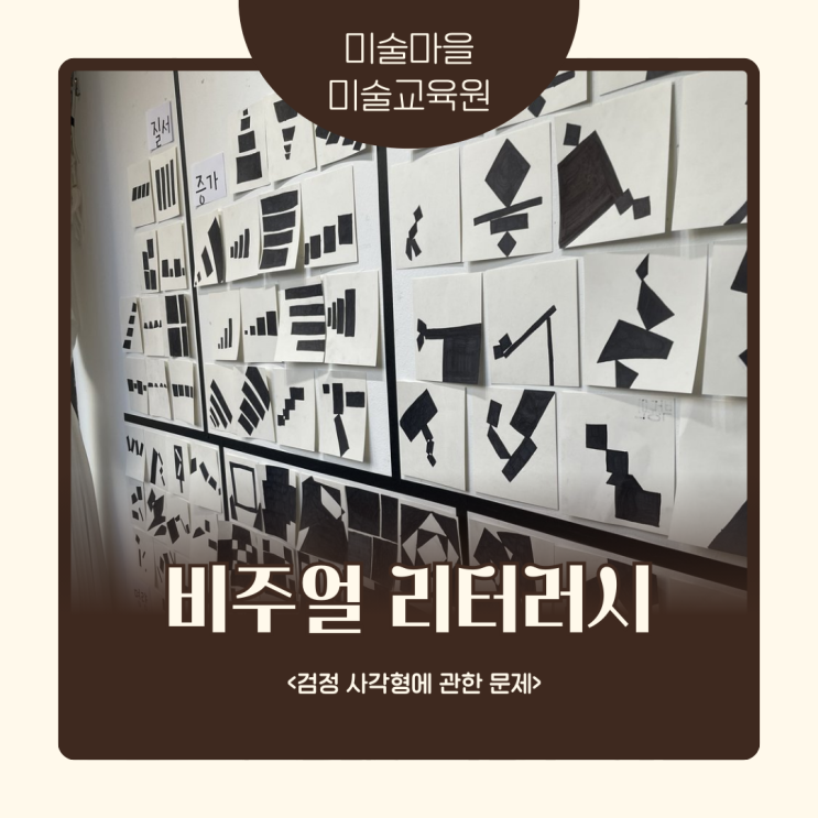 안녕하세요 >.< 아이들의 꿈이 자라나는 공간 미술마을 박원장입니다. 왜 지금 '비주얼 리터러시'인가? 우리 아이들과 함께 검은 사각형에 관한 문제를 주제로 비주얼 리터러시에 대해 알아보았습니다. 화장실 픽토그램부터 브랜드 로고까지, 우리는 이미지의 시대에 살고 있습니다. 비주얼 러터러시는 이미지를 읽고, 분석하고, 나만의 언어로 재해석하는 미래형 핵심 역량입니다. 미술마을의 스페셜 드로잉은 바로 이 '시각적 문해력'의 문을 여는 과정입니다. <검정 사각형에 관한 문제> 프로젝트 - 제한의 역설 - 오직 4개의 검정 사각형만 사용합니다. * 6가지 추상 단어의....... <img src="https://blogthumb.pstatic.net/MjAyNjAyMjhfMjMw/MDAxNzcyMjg3NDQxOTU0.NXesBmmX2f3LDPNLRLrRVlVzTbIyF_J0IdDGUTKDI_kg.1FEpwl_5nbgDHrdK6uHgYFT6h9DqdPelhUSACjCDC94g.PNG/%B0%A5%BB%F6_%BA%A3%C0%CC%C1%F6%BB%F6_%BB%A7%C1%FD_%BA%A3%C0%CC%C4%BF%B8%AE_%B8%C0%C1%FD_%BF%A9%C7%E0_%C0%CE%BD%BA%C5%B8%B1%D7%B7%A5_%C6%F7%BD%BA%C6%AE.png?type=s3" />