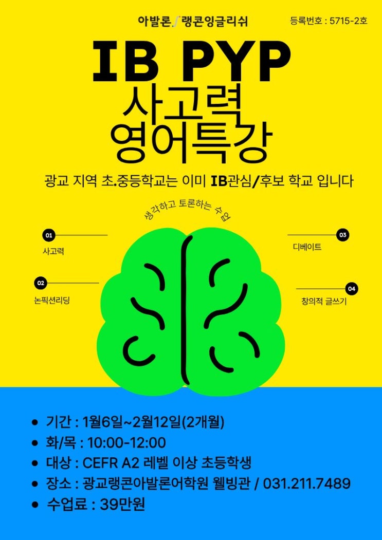 안녕하세요. 광교 아발론 녹지원 입니다. 겨울방학을 맞이하여 아래와 같이 초.중등부 특강을 준비했습니다. 웰빙관과 에듀관에서 진행하는 모든 특강을 포스팅 합니다 학부모님께서는 관심있는 수업을 선택하시기 바랍니다 진로에서 진학, 어학에서 입시영어까지 광교 녹지원의 특강은 연령별로 꼭 필요한 수업만 진행합니다 하단 수업 안내문을 보시고 수업을 원하시는 분은 아래 구글 신청서를 작성해 주시기 바랍니다. 1 초등 저학년을 위한 사고력 엑티비티 특강 - 사이언스, 쿠킹 & 아트 잉글리시 - 영어 뮤지컬 2 초등 고학년을 위한 IB사고력 영어특강 광교초, 호수초, 광교중, 다산중, 영통중 영일중 등 수원과 용인지역 학교들은 이....... <img src="https://blogthumb.pstatic.net/MjAyNTEyMTFfMjQw/MDAxNzY1NDUxMTM1MzA2.vi9qgBu5s9Kh3c9fBpHFTDiMJl4EE0Dc9TyU7hVZXyYg.K8bs7un2c0jVtwCfY5pFRLTDMnhoY-euYQ-Nq71CQL4g.JPEG/22.jpg?type=s3" />