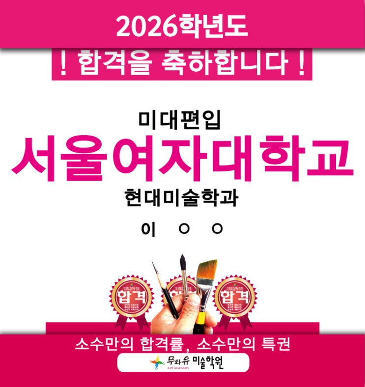 26학년도 서울여대 현대미술학과 합격! 축! 미대 편입 / 회화 서양화 입시 [분당 무와유미술학원]