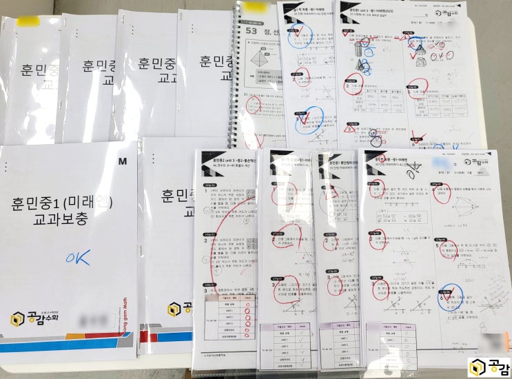 훈민중수학학원 기말고사 대비 끝! 시험 대비는 어떻게 진행되었을까요? 안녕하세요, 공감쌤이에요! 이제 학교별 기말고사도 거의 마무리되는 시기죠. 훈민중수학학원 공감수학고산도 이번주에 기말고사 대비를 모두 마쳤답니다. 그래서 오늘은 그동안 우리 공감 친구들이 시험을 준비하면서 어떻게 공부했는지 살짝 소개해 드리려고 해요! 학교 기말고사를 대비할 때 가장 중요한 것은 첫째도 둘째도 교과서가 아닐까 해요. 기본적으로 시험 출제 자체가 교과서에서 이루어지니까요. 하지만 교과서에 있는 문제가 똑같이 나오는 건 당연히 아니잖아요? 그래서 훈민중수학학원 공감수학고산에서는 문제 유형 자체를 익히고 충분히 문제풀이 연습....... <img src="https://blogthumb.pstatic.net/MjAyNTEyMTlfMTMz/MDAxNzY2MTE4NzM5NjIz.IgIyZZYfHBU8LSAx5oxa-y6reG8J92KL3VPyAPcT6Isg.IWAl6LoGAE5Drfb7tsn4nWl91eFNq1wc_P8aXqVWOKgg.JPEG/KakaoTalk_20251216_135425615_05.jpg?type=s3" />
