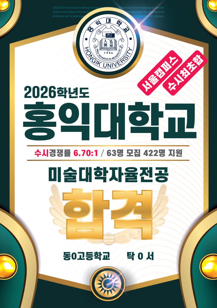 평촌미술학원 가우디 | 2026학년도 미대 수시 합격 발표! 홍익대학교 합격 안내!!!
