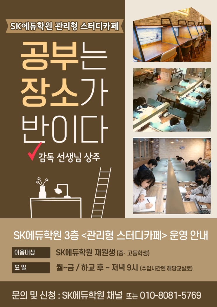 SK에듀학원 3층 관리형 스터디카페 운영 안내