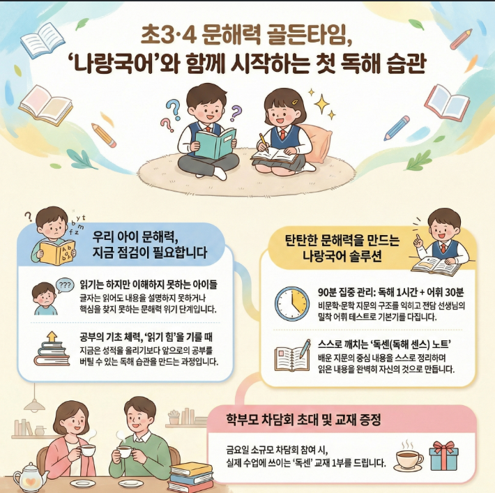 대치프라임학원 (능곡관) / 대치프라임장곡학원 (장곡관) [나랑국어 프로그램] 글은 읽는데 이해를 못 한다고? 초3·4학년을 위한 첫 독해 습관 만들기 (+학부모 차담회 초대)