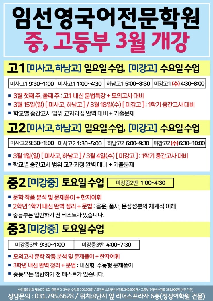 [임선영국어] 1학기 내신대비수업을 개강합니다.