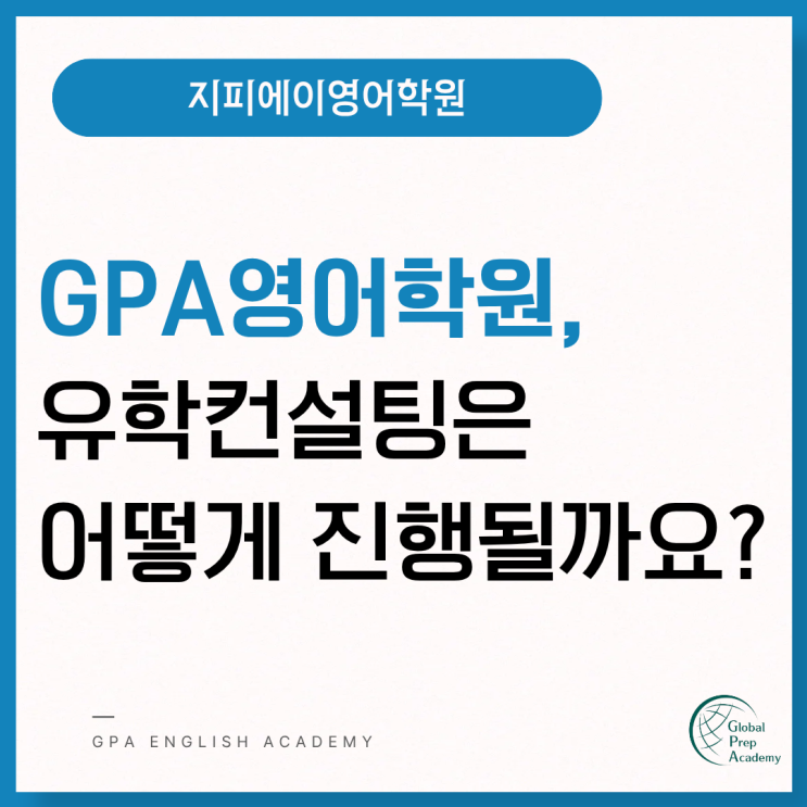 GPA영어학원의 유학컨설팅 지도 방식 안녕하세요. 지피에이영어학원 원장 정승주입니다. 새 학기가 시작되고 나니 부쩍 유학 관련 문의를 주시는 학부모님들이 많이 계세요. 사실 상담을 오시는 학부모님들의 표정에는 '기대'보단 '걱정'이 많이 보이곤 합니다. 고등학생인데 지금 준비해도 가능할까요? 대학을 해외로 가고 싶어서요. 일본으로 유학을 가고 싶어요. 일단 해외 입시는 정보가 너무 많죠. 검색창에 '유학'이라는 단어만 검색해도 정보가 너무 많아 혼란스러우셨을 겁니다. 그리고 무엇보다, 우리 아이를 어느 곳에 맡겨야 할지 계속 고민되실 수밖에 없어요. 그래서 오늘은 저희 지피에이영어학원의....... <img src="https://blogthumb.pstatic.net/MjAyNjAzMDdfMTUx/MDAxNzcyODc2NjcyNjkw.rcbFPAYeqyQJ-OTJGcMf69AZgxh5jAQI-XVnEpAEjVkg.TlECpLkapmhf_1ldaj05xvetYa_J1s0RKFBiCApb4D4g.PNG/1.png?type=s3" />