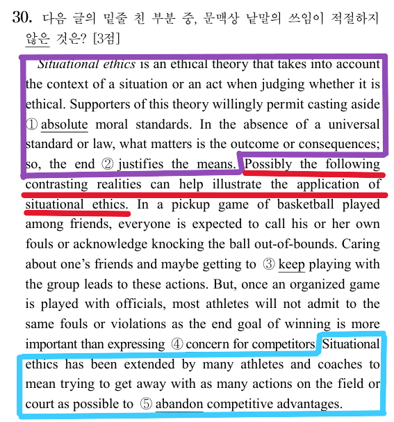 #서대문영어학원 #탑에듀에서는 역대급 고난이도로 평가받는 #2026수능영어 문제들을 하나씩 해설하고 있습니다. 지난번 29번 문법문제에이어, 오늘은 낱말의 적합성을 묻는 30번 문제를 해설해 보도록 하겠습니다. 통상 29번에 나오는 문법문제보다 30번 단어 적합성문제가 어려운 것이 사실입니다. 문법 문제는 많은 경우 지문을 읽지 않고도 풀 수 있는데요, 30번 단어 문제는 전체 지문을 이해하고 해당 단어가 문맥에 맞게 알맞게 쓰였는지를 묻는 문제이기 때문이지요. 그래서 시간도 훨씬 많이 걸린답니다. 30번 문제는 보통 하나의 주제를 던져주고, 그 주제의 예시를 들거나, 혹은 상반된 견해를 진술하는 문맥에서 알맞지 않은 단어를....... <img src="https://blogthumb.pstatic.net/MjAyNTExMjJfMjc1/MDAxNzYzODE5NjU0NjU2.scwLyW52zMBtKAu-80oVznpHqeA4hdyLgZIQKWguPhYg.42ttRdXTB8FuPSbnEWKbjoWJjw3_XtDOasVCEFvj5_8g.PNG/2026_30%B9%F8.png?type=s3" />
