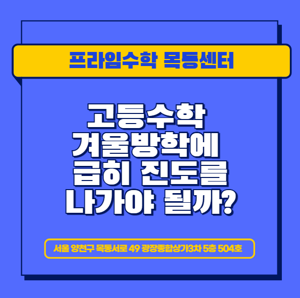 안녕하세요. 한가람고수학 프라임수학 목동센터입니다. 고등학교에 올라가기 전 겨울방학에는 무얼 해야 좋을지 망설이는 학생들과 학부모님들이 있습니다. 고등 예습을 해야 할지, 아니면 중등 내용 복습부터 해야 할지 고민이 많을 텐데요. 오늘은 여기에 대한 답변을 드려보면서 겨울방학 중 예비고 1이 준비해야 할 것은 무엇인지 자세히 알려드리겠습니다. 예비고1 겨울방학은 그냥 가볍게 넘기는 시간이 아니며 향후의 3년을 결정하게 되는 중요한 기점이라고 할 수 있습니다. 이때 제대로 된 방향을 잡아 학습하면 첫 시험부터 그 결과가 안정적으로 나올 수 있지만, 그렇지 않고 감에 의존하면서 남들 하는 정도로만 따라가려 하면 처음....... <img src="https://blogthumb.pstatic.net/MjAyNTEyMTlfMTIw/MDAxNzY2MTA5NjYyMzc0.vRJ6zQPRY9Urb1J3deVfrWWO3W6w3pFlnLozmGrCUSIg.fJHzv9PMdvCZz2ucwoQwxsn4pZc1poc8ivFsv00hvDQg.PNG/%B4%EB%C7%A5.png?type=s3" />