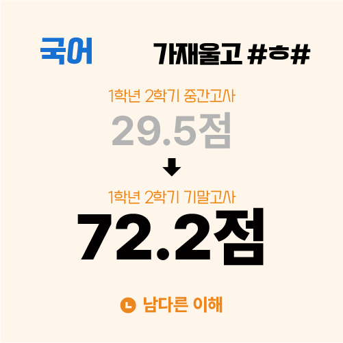 [축하합니다] 가재울고 국어 1학년 #ㅎ# 29.5점 → 72.2점 | 2025년 2학기 기말고사