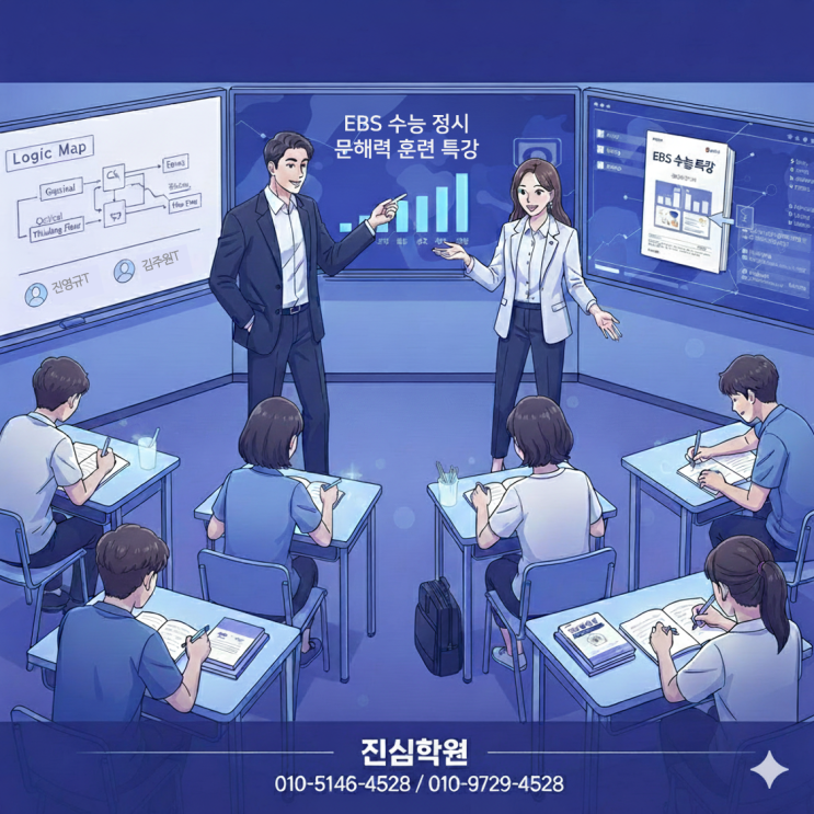 안녕하세요! 진심영어입니다. 2026년 수능 영어 1등급 비율이 3.1%에 불과했다는 사실, 알고계셨나요? 이제 수능 영어는 단순히 '영어를 잘한다'의 어학시험이 아니라 영어로 표현된 고난도 지문을 분석하고 추론하는 사고력과 문해력 시험의 성격이 매우졌기 때문이라 볼 수 있습니다. 다가오는 겨울방학은 수능 고득점의 밑그림을 그리는 가장 중요한 시기입니다. 단순 어휘와 문법 기본기를 넘어, 복잡한 논리를 꿰뚫어 보는 힘을 기르는 공부, 훈련이 필요합니다. 그래서 진심영어에서 개설한 수능 고득점의 핵심을 관통하는 EBS 수능 정시 문해력 훈련 특강! 특강은 언제 진행되나요? 수업 요일 및 시간 월, 화, 수, 목, 금 ㅣ 18....... <img src="https://blogthumb.pstatic.net/MjAyNTEyMDZfNSAg/MDAxNzY1MDAzMDkxMzgw.UAC27CbdlOE7dfwNhrJh-zfQESlZRM1rMY-5zBSDDkkg.yCR1ZFuMoZKL23P907gyk5h8zNzPmc5zE3Nz7g4sc5kg.PNG/Gemini_Generated_Image_9g5agz9g5agz9g5a.png?type=s3" />