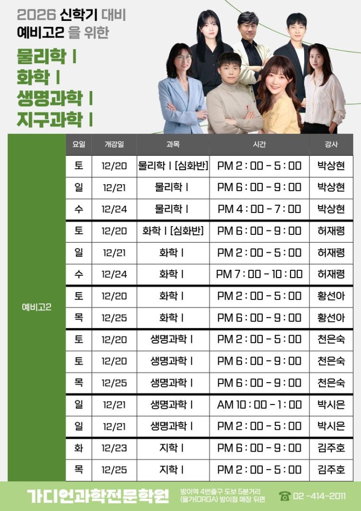 물리학 박상현T 수업 진도표 예비고2 화학 허재령T 수업진도표 예비고2 생명과학 박시은T 수업진도표 예비고2 화학 황선아T 수업진도표 예비고 2생명과학 천은숙T 수업진도표 <img src="https://blogthumb.pstatic.net/MjAyNTEyMTFfMTY1/MDAxNzY1NDMzNDE4MzA2.v_Uy-E_HAodws9GpCm2tjraNwizm8f0fgS82J4UypIEg.cIpY4bhuN0Pp8BNbmqBbFC9ozfvHpHiDuhD5nKzeBRog.JPEG/2.jpg?type=s3" />