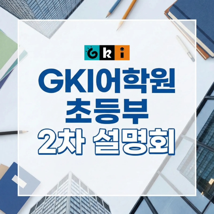 GKI어학원 2026학년도 초등부 2차 입학설명회 예약 안내 GKI어학원입니다. 지난 1차 설명회에 보내주신 뜨거운 성원에 힘입어 2026학년도 초등부 신입생을 위한 2차 입학설명회를 개최합니다. GKI어학원만의 차별화된 커리큘럼과 교육 철학을 상세히 안내해 드릴 예정이오니, 학부모님들의 많은 관심과 참석 부탁드립니다. 2026학년도 초등부 2차 입학설명회 안내 이번 설명회는 쾌적하고 심도 있는 진행을 위해 사전 예약제로 운영되며, 한정된 좌석으로 인해 조기 마감될 수 있습니다. 일자: 2025년 12월 20일 (토요일) 대상: 2026학년도 초등부 입학 희망 학부모님 장소: GKI어학원 3층 강당 (송파구 올림픽로 491 세제빌딩) 예약 및....... <img src="https://blogthumb.pstatic.net/MjAyNTEyMDFfMjk1/MDAxNzY0NTUxODY5NTU3.VSDIpeccJ9Fd4KM29WMuwQ1eq-QprBL6DQgvAwyyhkcg.uGesAfOcS7QWmZBFC7cIQ7sUgKSOvfDwNYs8MpdSZQUg.PNG/%C1%A6%B8%F1%C0%BB_%C0%D4%B7%C2%C7%D8%C1%D6%BC%BC%BF%E4._%282%29.png?type=s3" />