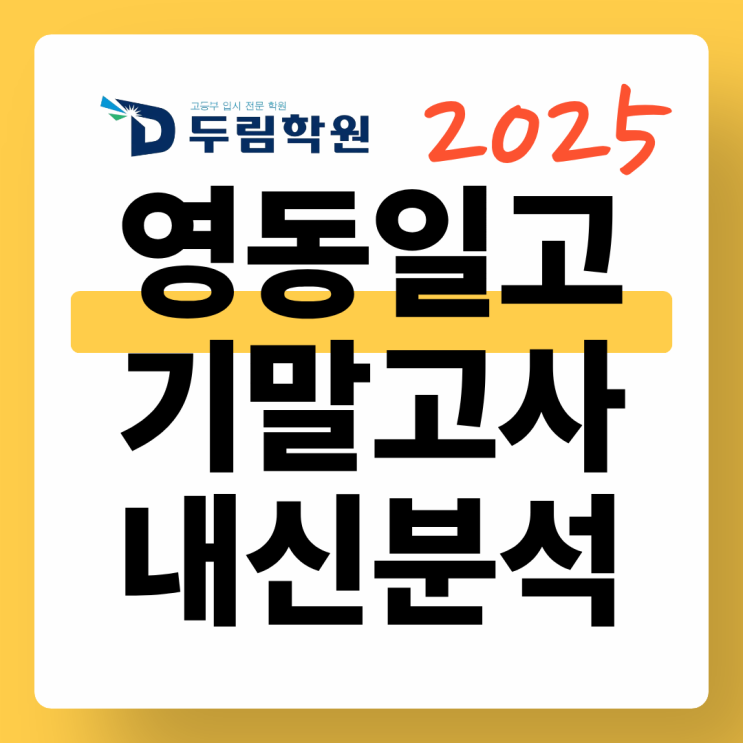 #영동일고기말고사 #영동일고영어학원 #영동일고영어 #영동일고기말등급컷 #영동일고등급컷 오늘 끝난 영동일고 영어시험 분석 카드뉴스입니다. 예상 등급컷은 재학생 학부모님들께만 공개합니다. 1학년 마지막 영어 시험 — 2025학년도 2학기 영동일고 기말고사 분석 2025학년도 2학기 영동일고 1학년 영어 기말고사가 마무리되었습니다. 1년 동안 총 4번의 지필고사를 치르며 아이들이 참 많이 성장했고, 그 곁에서 함께 애써 주신 학부모님들의 수고도 결코 작지 않았습니다. 아직 다른 과목 시험이 남아 있는 학생들도 있는 만큼, 이미 지나간 시험 결과에 마음이 너무 흔들리기보다는 “지금 남은 시험에 최선을 다하는 것”이 무엇보다 중....... <img src="https://blogthumb.pstatic.net/MjAyNTEyMDVfMTg3/MDAxNzY0OTMzODc4NzA5.2-JaoFF6ZjYcxV9wGX34XxSxXYNPK3FVpk3daShERDgg.rfiSifwKm5osEJLVn11PpDQVZfhZAsR7q2pWq9KCeowg.PNG/%C1%A6%B8%F1%C0%BB_%C0%D4%B7%C2%C7%D8%C1%D6%BC%BC%BF%E4.png?type=s3" />