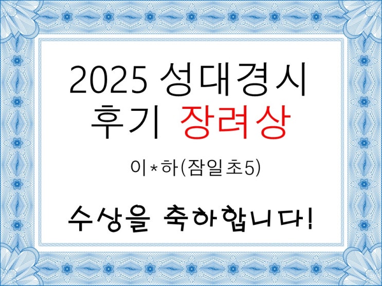 수상을 축하합니다. <img src="https://blogthumb.pstatic.net/MjAyNTExMThfOTkg/MDAxNzYzNDMyOTY5OTg0.Uh6eJ2IxCSpC8fITRcqqhE7joQUlog1TxQR6Km5IHJAg.V__kw4xMFyq9xZhKgp0pOfftId8fK_A7Wr12wkbHaLMg.JPEG/%BC%BA%B4%EB%B0%E6%BD%C3_%C7%D5%B0%DD.jpg?type=s3" />