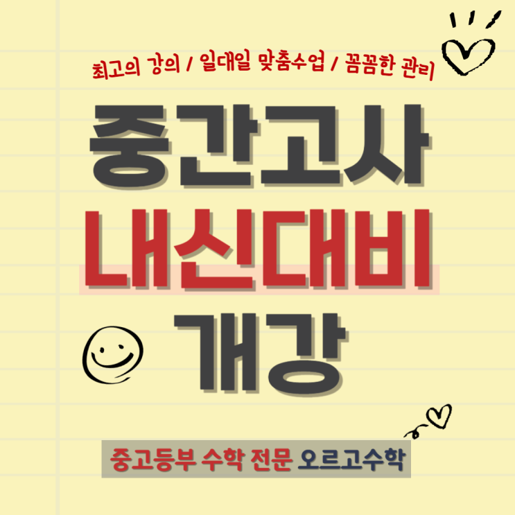 오르고수학 새학기 내신대비 개강안내 / 대치 일대일 개별수학진도 무한 클리닉