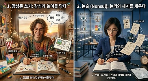 많은 학부모님이 아이가 책을 읽고 독후감을 쓰면 '논술 공부를 하고 있다'고 안심하십니다. 하지만 냉정하게 짚어봐야 합니다. 단순한 감상문과 '논술'은 차원이 다른 영역이며, 목적 없는 독후는 오히려 시간 낭비가 될 수 있습니다. 1. 감상문은 논술이 아닙니다 : '출력'의 질이 성적을 결정한다 책을 읽고 "느낀 점"을 나열하는 것은 일기일 뿐, 입시와 직결되는 **논술(論述)**이 아닙니다. 진짜 논술은 지문을 **정독(Input)**하여 정보를 장악하고, 이를 논리적 체계에 맞춰 **재구성(Output)**하는 고도의 사고 과정입니다. * 초등 정독의 중요성: 초등 시기에 대충 훑어 읽는 다독 습관이 든....... <img src="https://blogthumb.pstatic.net/MjAyNjAzMDJfMjc3/MDAxNzcyMzg1NzU1MTc2.vs-HVVgwUb224z3Ax0lvdH7B_NJLWDVc24bliLXm9ZUg.CptQJXK0jYofzICNs1cWvvG0Lh94MfvGxfW9tjcP_mAg.JPEG/KakaoTalk_20260302_022019106.jpg?type=s3" />