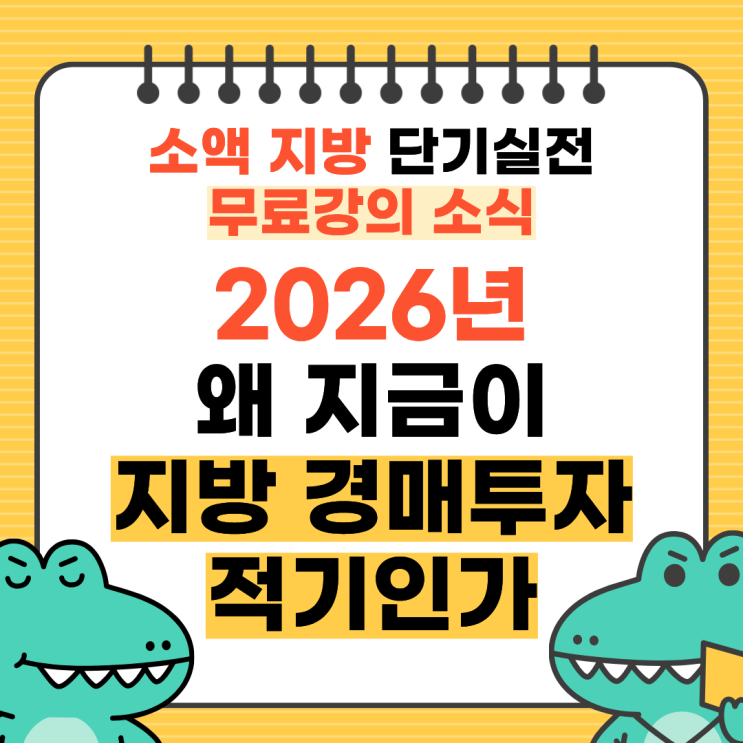 2026년 왜 지금이 지방 경매투자 적기인가 [소액 지방 단기실전 무료강의 소식]